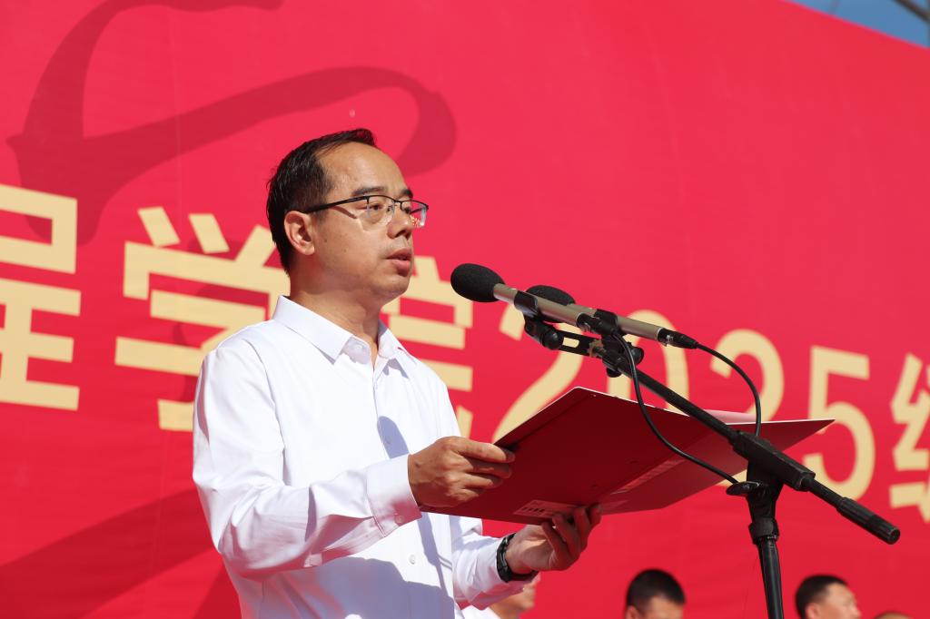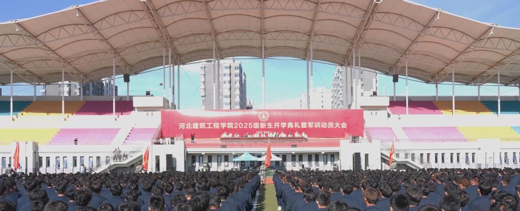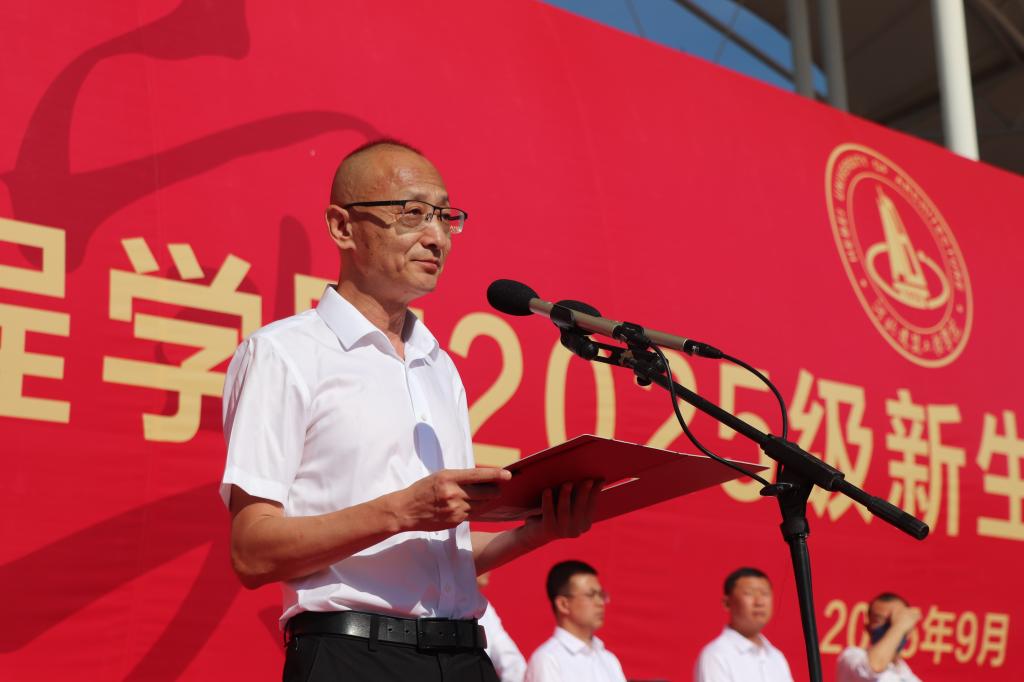 9月1日上午,我校2025级新生开学典礼暨军训动员大会在体育场举行。校领导翁维素、王建民、张立群、尹万玉、姚冰、李敏、赵海军、贾玉贵、宋强出席大会。学校职能部门负责人、院系领导、承训教官、新生辅导员和全体新生参加了活动。大会由副校长赵海军主持。
