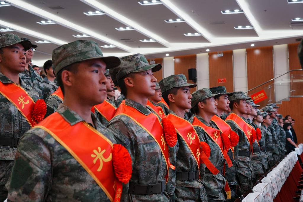 9月16日,我校2025年秋季入伍大学生欢送会在新能源交流中心举行。校党委书记翁维素、校长王建民、副校长赵海军出席欢送会。相关部门、院系负责人,辅导员代表,全体入伍学生,部分入伍学生家长,国防后备营成员以及学生代表参加活动。欢送会由武装部部长孙彬主持。