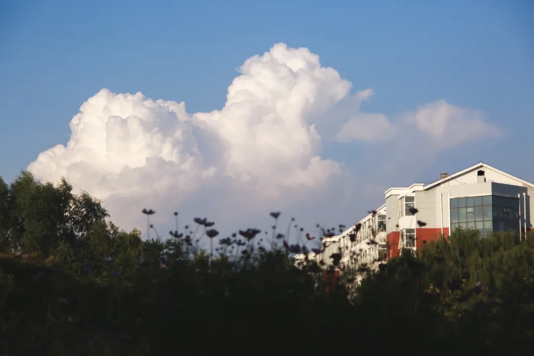 在校园的角落,云朵把天空当作画布,肆意晕染出蓬松的白。花草摇曳,楼宇静默,这一方天地,藏着青春里最澄澈的时光,每一次抬头,都是与美好不期而遇的小确幸。