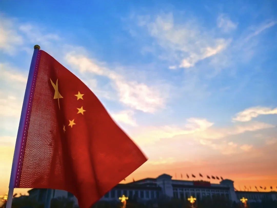 当五星红旗在霞光中猎猎飘扬,与庄严的建筑交相辉映,这是祖国繁荣的底色,是每一个中国人心中不灭的信仰与骄傲。