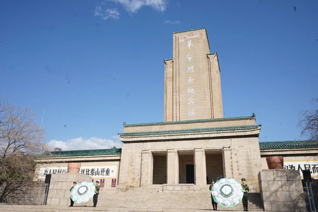 全体人员昂首注目,高唱国歌。随后,时空仿佛静止,一分钟的默哀里,每一位参与者都与历史进行着灵魂的对话。春风拂过苍松翠柏,似在诉说着那些未曾远去的传奇。