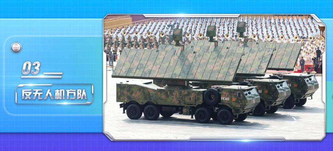 受阅的反无弹炮系统、高能激光武器、高功率微波武器等成体系建设,可拦截无人机、巡飞弹等目标,既能软杀伤,又能硬摧毁,是反制无人机的强大“铁三角”。