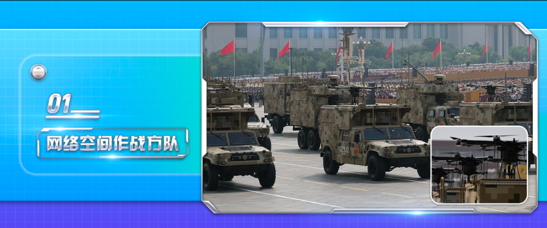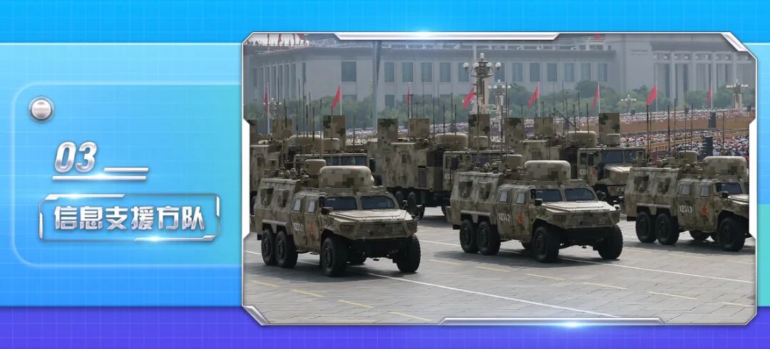 受阅装备由战场网云车、数智赋能车、天地组网车、信息融合车组成,能够快速构建新型网信体系、有力支撑联合作战。