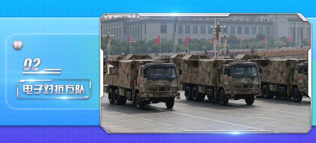 这些受阅装备均为我军自主研发,是我军现役电子对抗主战装备,形成了“侦、攻、防”三位一体电子战能力,是抢占战场先机的“电磁利剑”。